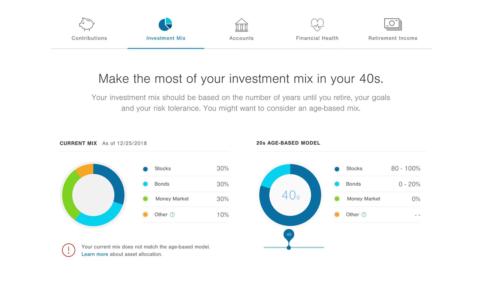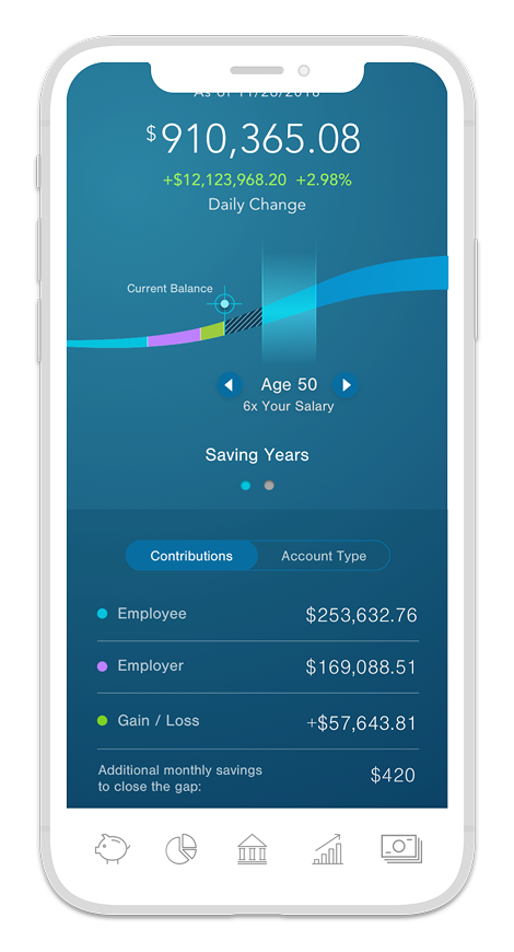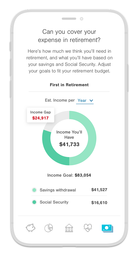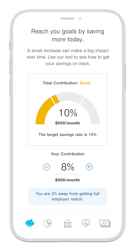 The redesigned homepage delivers clear, personalized guidance — helping users understand their retirement outlook and the actions available to improve it. By surfacing the savings gap directly on the homepage, the experience makes the consequences of current savings behaviors immediately visible, encouraging earlier and more informed adjustments.